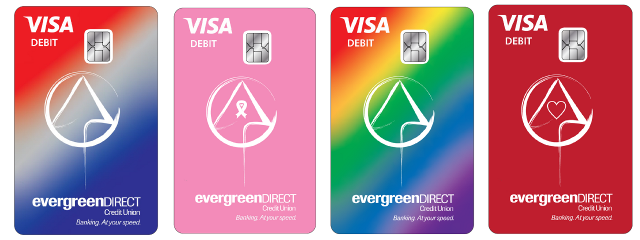 When you upgrade your evergreenDIRECT Credit Union debit card to one of our new designs for just $10, you'll be supporting four nonprofit organizations. Just give us a call at 360-943-7676 or visit our Tumwater Branch to pick up your new card.